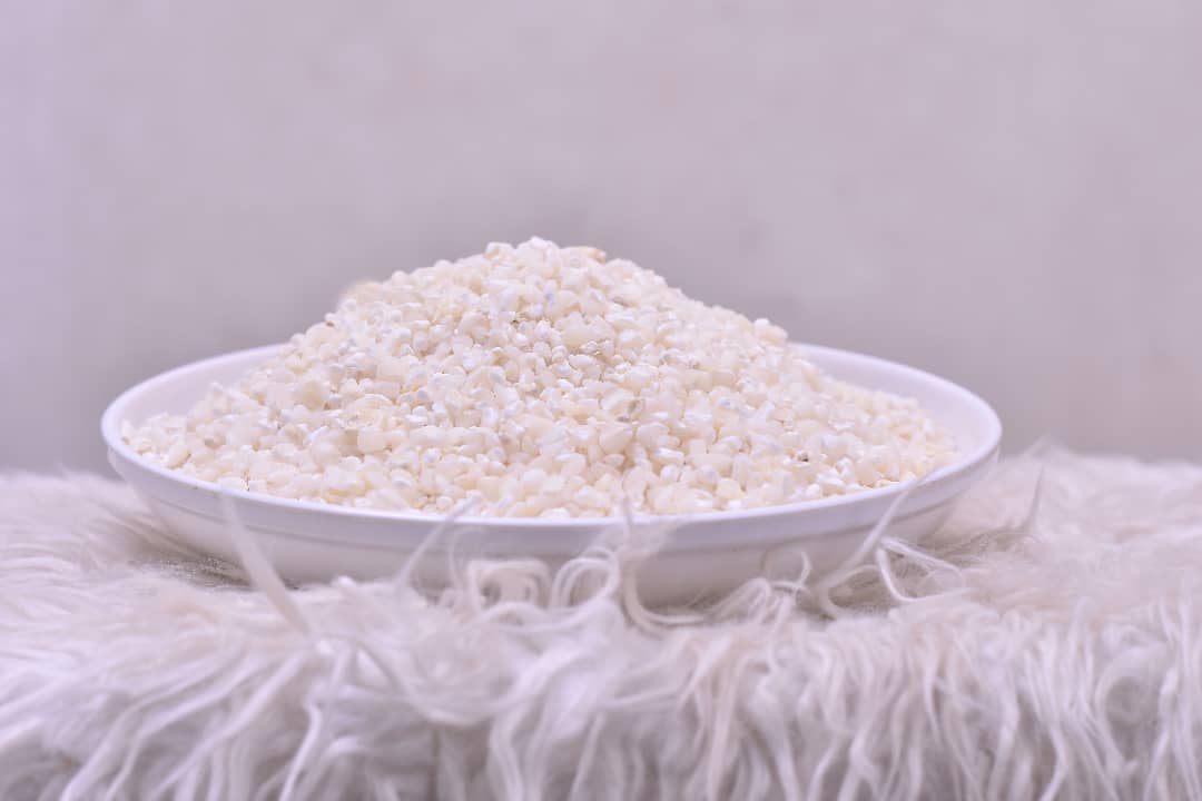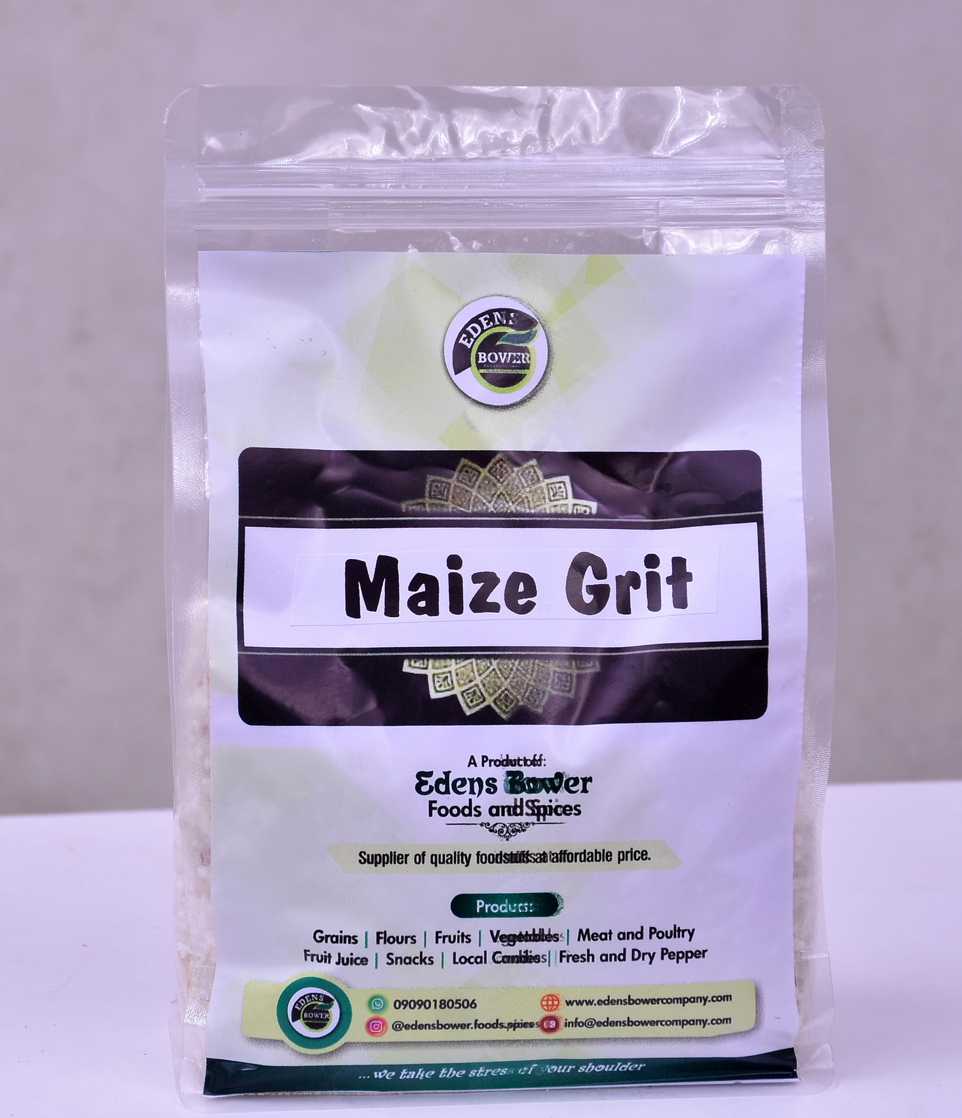 Maize Grit, or corn grits, are dried corn which have been ground/broken into a fine, medium size. It is common among the yorubas.