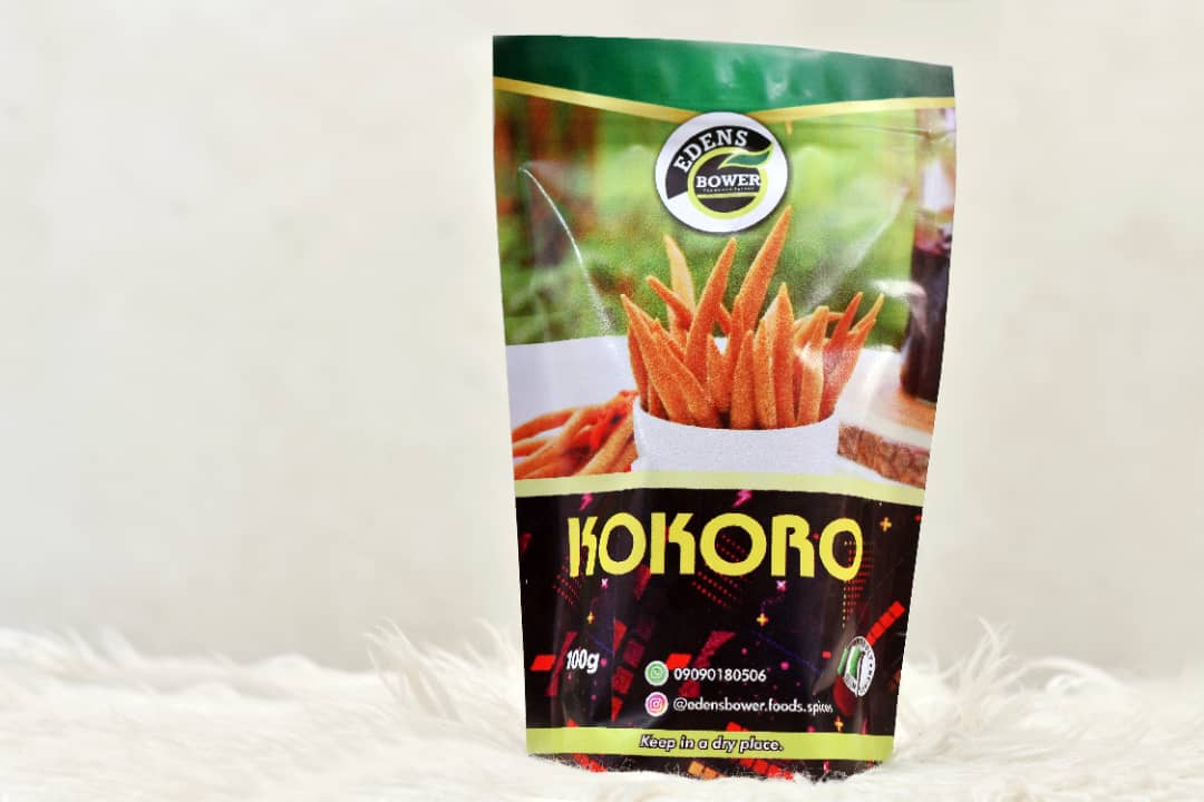 Kokoro is a common snack food in Nigeria. It is made from a paste of maize flour mixed with sugar and gari (cassava) or yam flour and deep-fried.